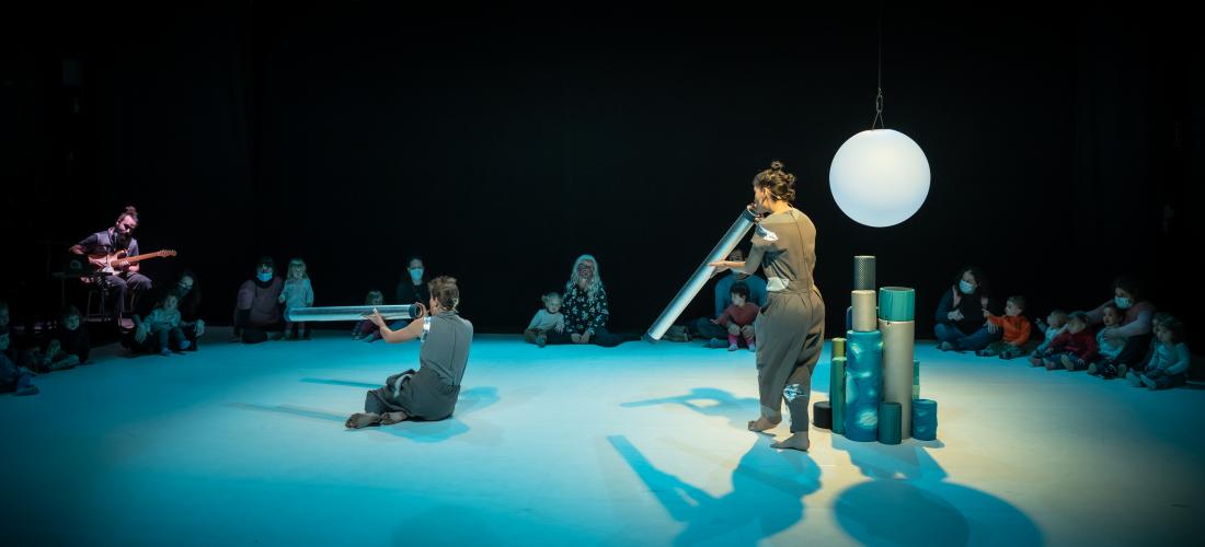 Unha experiencia sensorial para a primeira infancia chea de poesía visual, música en directo e movemento. Individuos, obxectos, que se desordenan, móvense, vólvense ordenar. Que atopan o equilibrio e a harmonía dentro da inmensidade. Que buscan como existir no medio do caos, nun lugar concreto e un instante preciso. Cada habitante deste cosmos, cada son, cada movemento, está suxeito a unha fráxil relación con todo o resto.