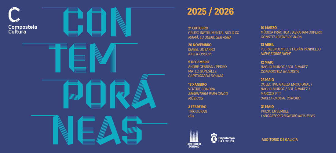 Contemporáneas é un programa do Concello de Santiago a través de Compostela Cultura co apoio da Deputación da Coruña