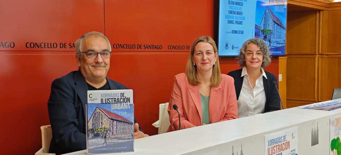 A nova edición das Xornadas de Ilustración Urbana foi presentada este luns nunha rolda de prensa na que tomaron parte a concelleira de Capital Cultura, Míriam Louzao, o deputado de Patrimonio da Deputación da Coruña, Xosé Luis Penas, e a coordinadora das XIU, Gemma Sesar.